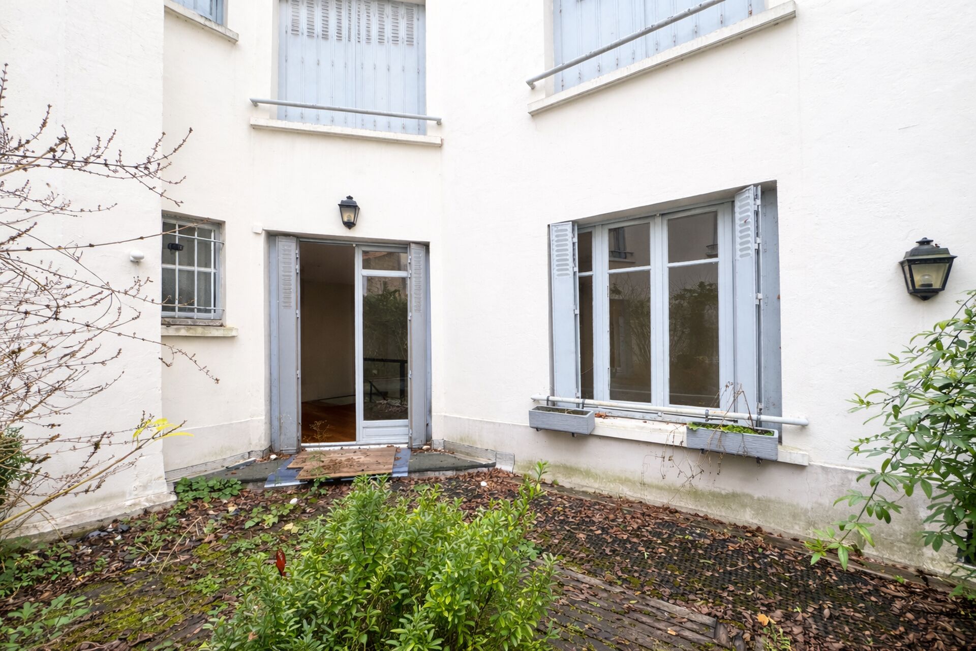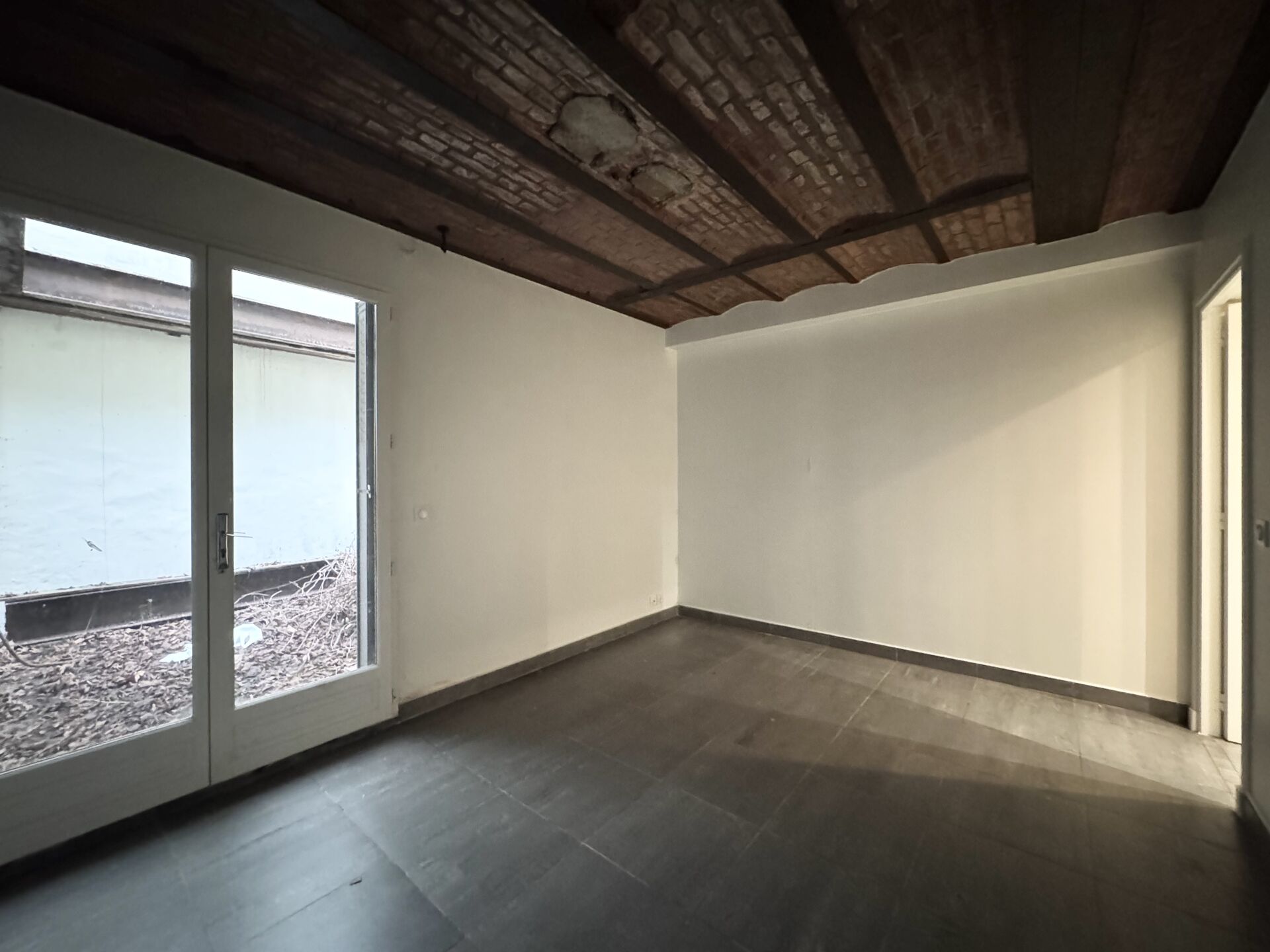 Le patio à aménager " lumière naturelle" est également directement accessible par des portes-fenêtres vitrées depuis une chambre attenante à une salle de douche avec un WC.