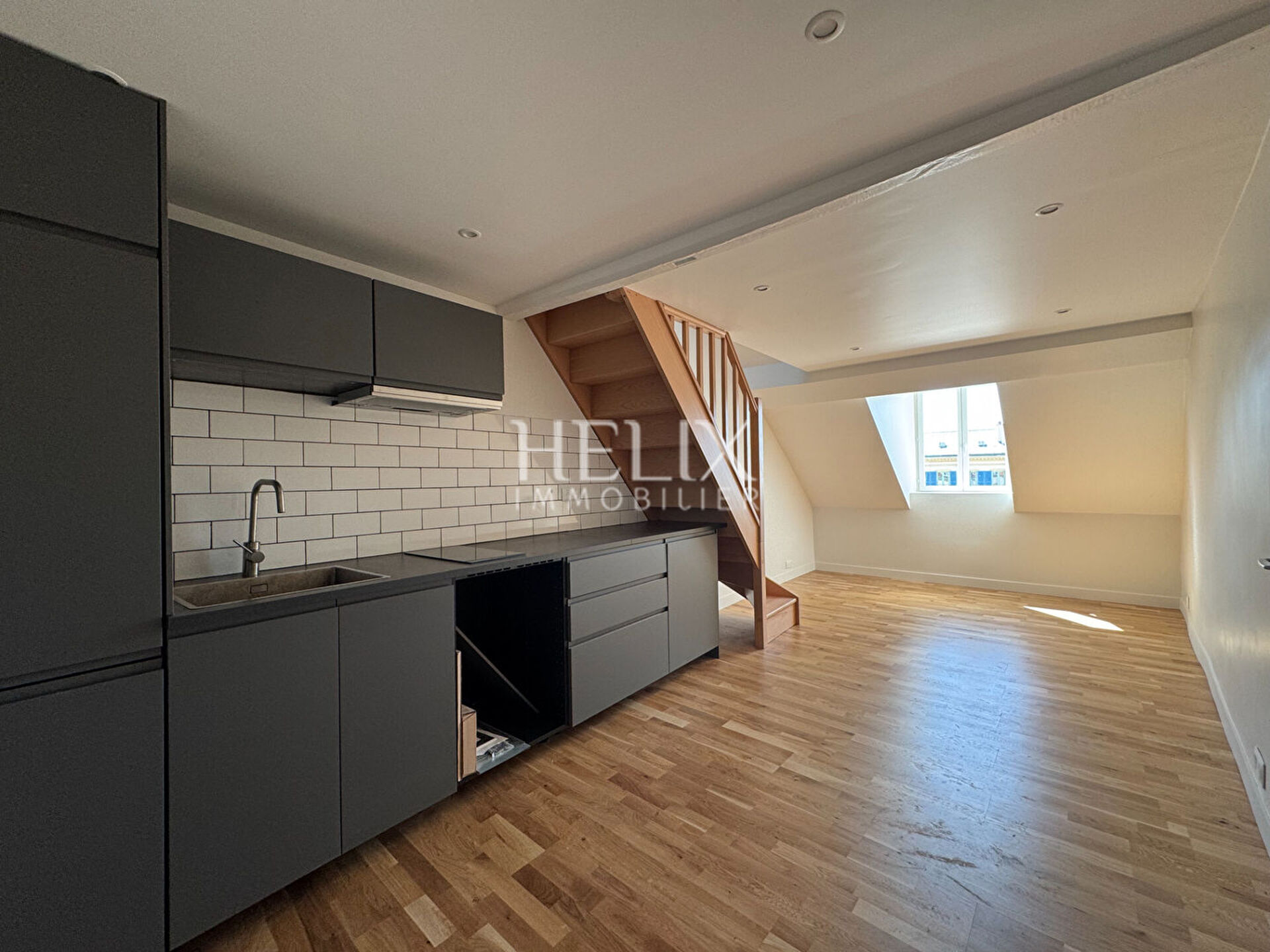 Exceptionnel à Saint Germain en Laye, un bel appartement refait à neuf situé au 4ème et dernier étage d'un immeuble ancien. L'appartement traversant bénéficie à la fois d'un emplacement rare Place du Marché, tranquillité, à 5 minutes à pied du RER A. Une superficie de 18,70 M² Loi carrez, surface au sol 36,20 M² ! Entrée, une cuisine aménagée et équipée ouverte sur la pièce à vivre, une salle de douche avec un WC et à l'étage une mezzanine de 10,50 M² surface au sol. Ce bien a profité d'une rénovation moderne, idéal investisseur, un pied à terre à Saint-Germain -en-Laye, une première acquisition appartement en résidence principale. Hélix Immobilier, nous consulter
