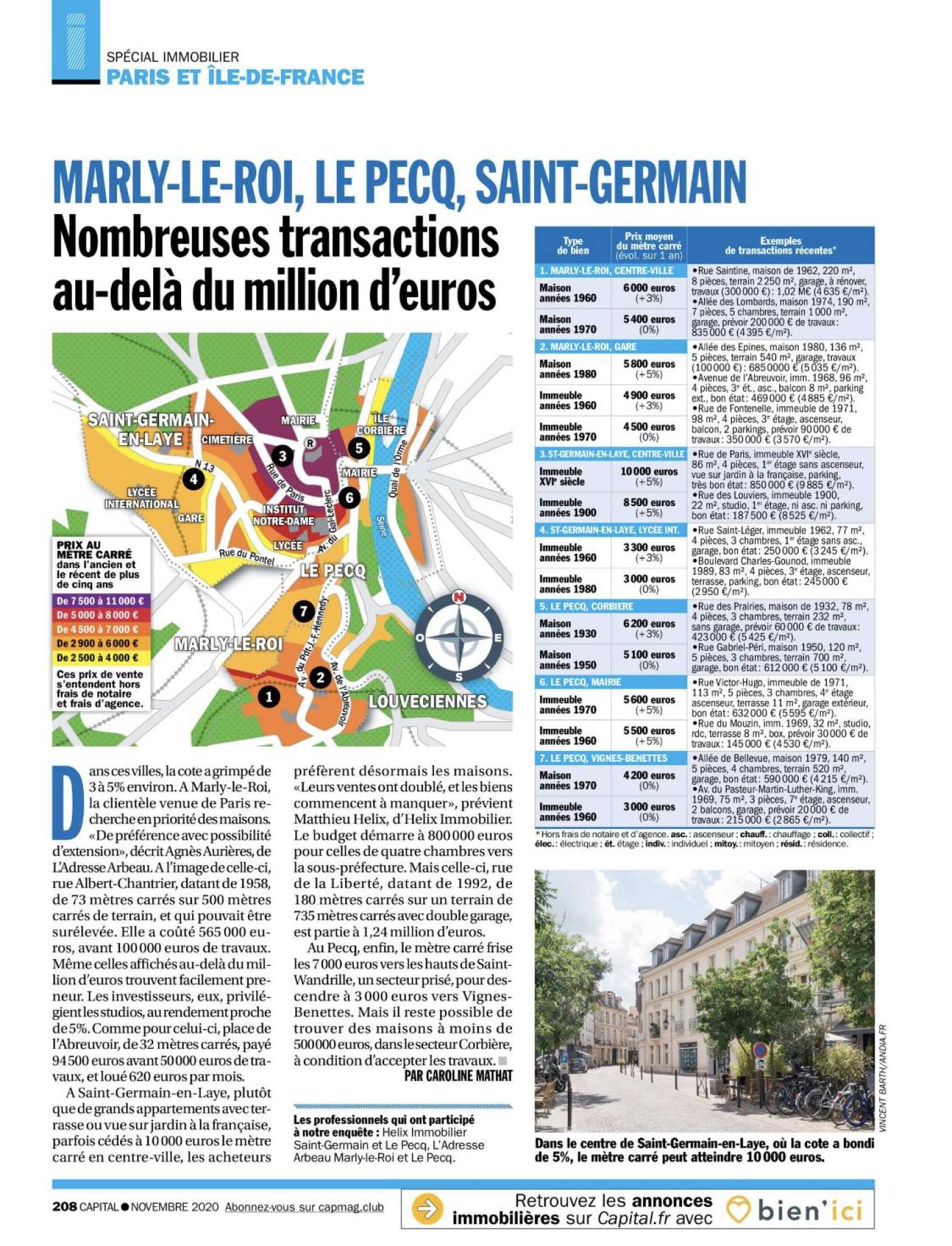 Matthieu HELIX Référent dans le magazine Capital dossier immobilier sur la région de Saint Germain en Laye