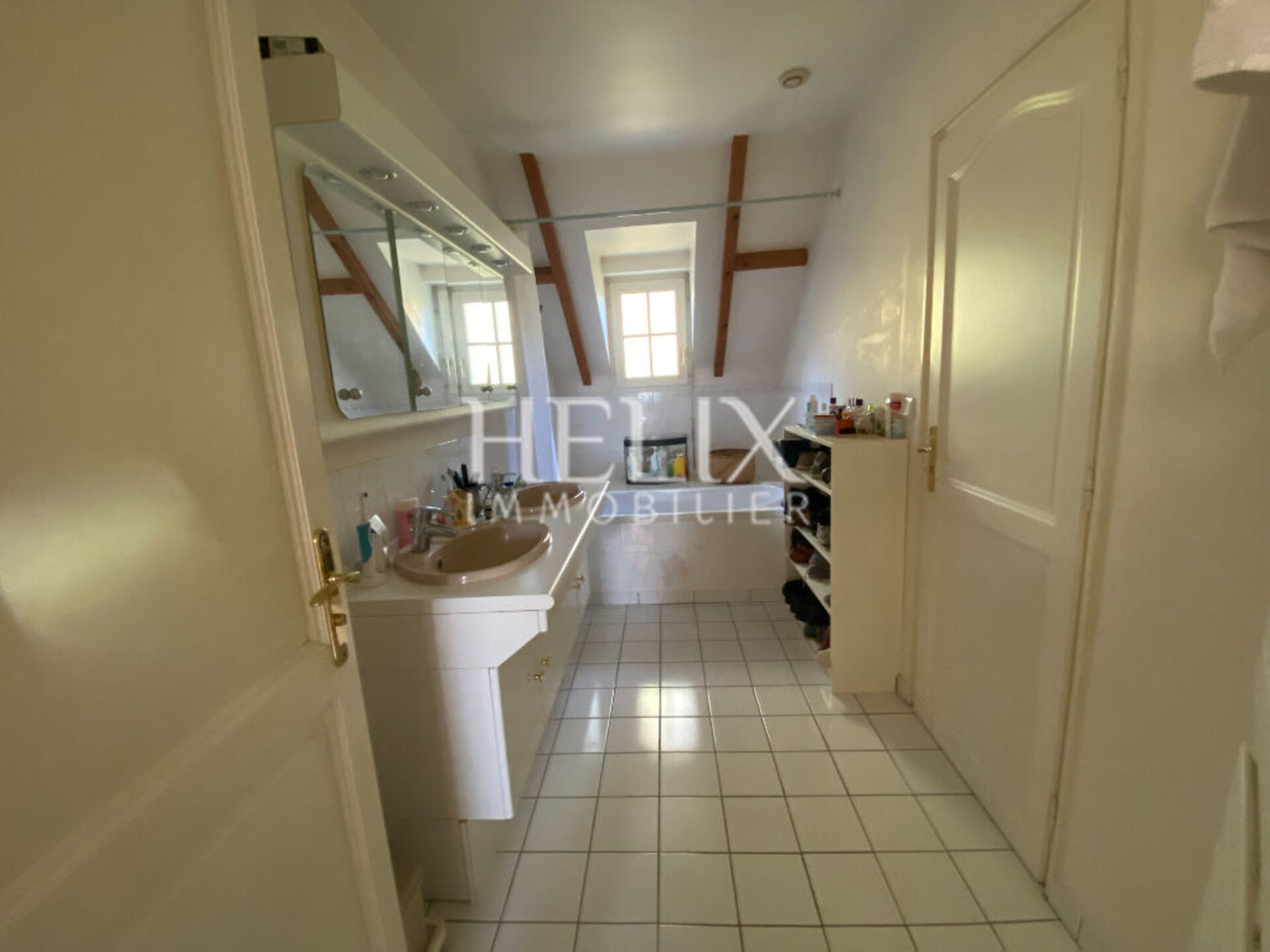 Elle se compose d'une entrée, un double séjour de 52 m² avec cheminée donnant sur terrasse et jardin, bénéficiant d'une double exposition , une cuisine séparée"/>