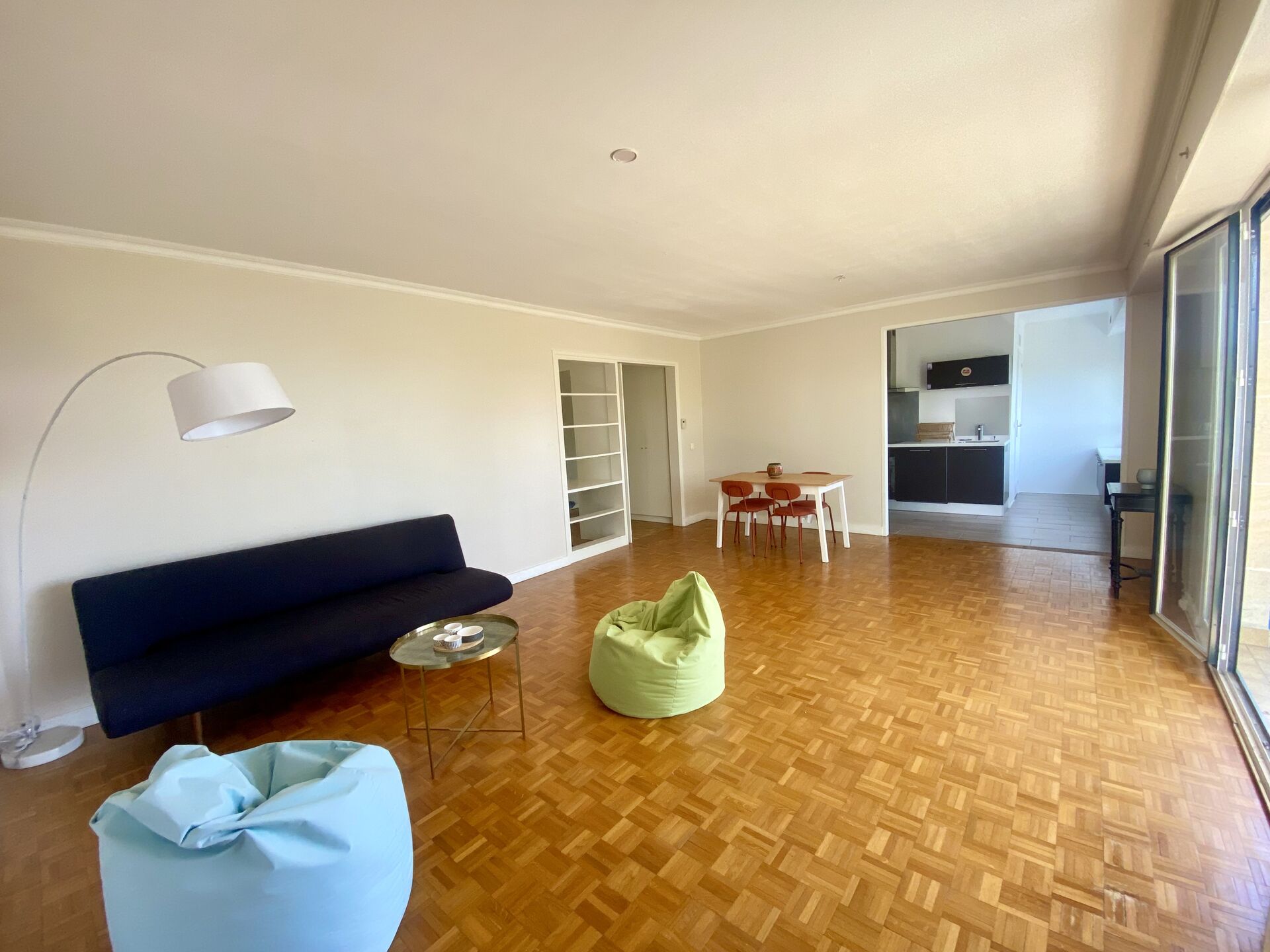 Une entrée, un beau séjour exposé sud donnant sur un large balcon, une cuisine ouverte, un bureau, un cellier, 2 chambres, une salle d'eau, WC. Nombreux rangements, aucune perte de place.